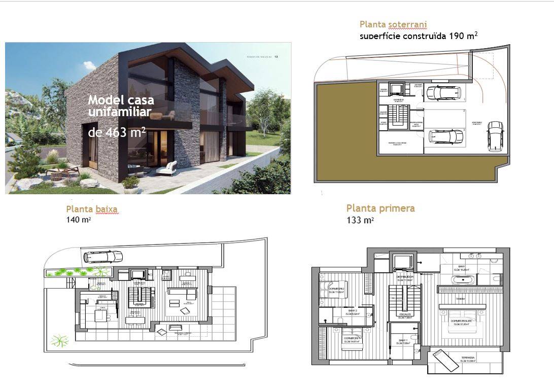 Single-Family Houses Looking for the maximum integration of the urbanization with the surroundings of Ordino, fleeing from verticality and overcrowding, we propose the construction of single-family houses, where the client can personalize each house, with the advice of our professionals. A modern Nordic style with a marked mountain character, with a combination of noble materials such as stone, slate and wood combined with large stained glass windows, iron and the fire of a large fireplace. With high quality standards, each home can be equipped with home automation, underfloor heating, aerothermal energy and covered with solar panels, hermetic closures with triple glazing that allow us maximum comfort with the minimum energy cost. Without a doubt, the best place to live.